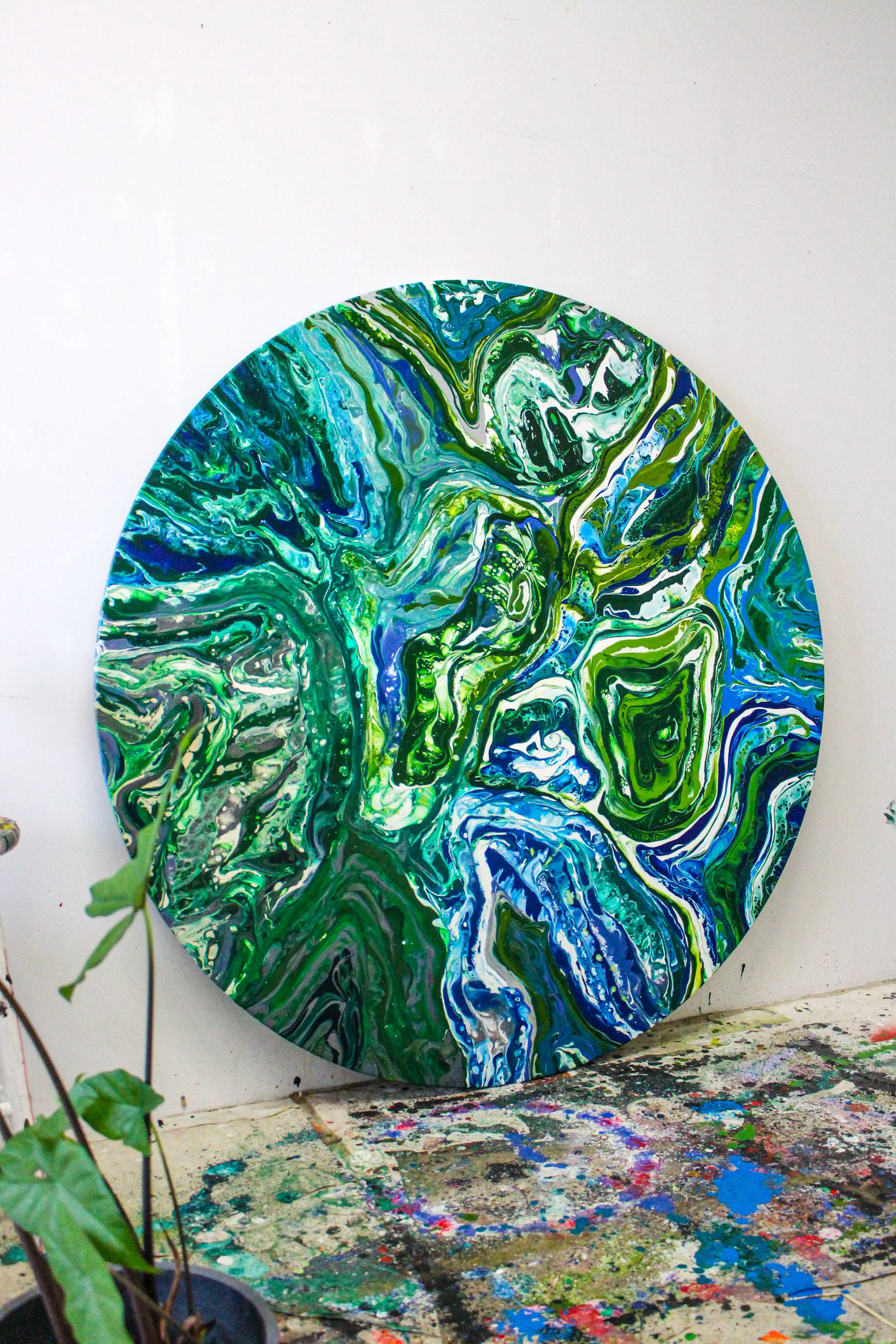 18in - mixed media on round wood panel
